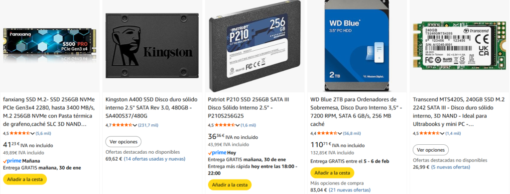 • Capacidades: Aunque están mejorando, las capacidades de almacenamiento suelen ser menores en comparación con los HDD.