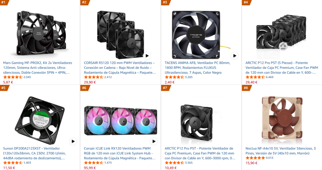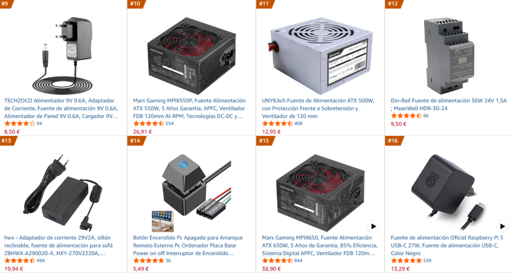 Las marcas de fuentes de alimentación para ordenador más buscadas y compradas en Amazon son: Corsair, Tacens, MSI, NOX y Mars Gaming.