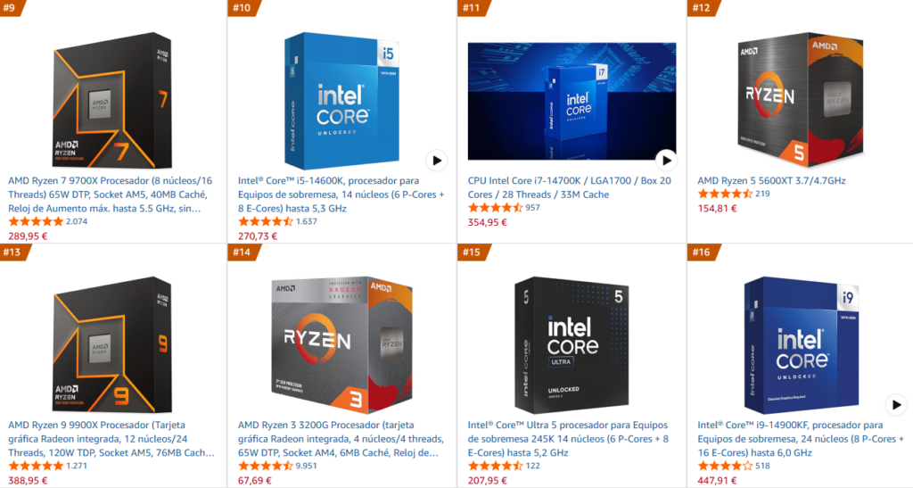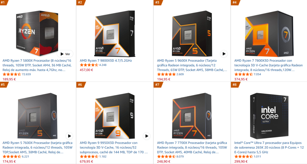 Las marcas de procesadores más buscadas y compradas en Amazon son: AMD y Intel.