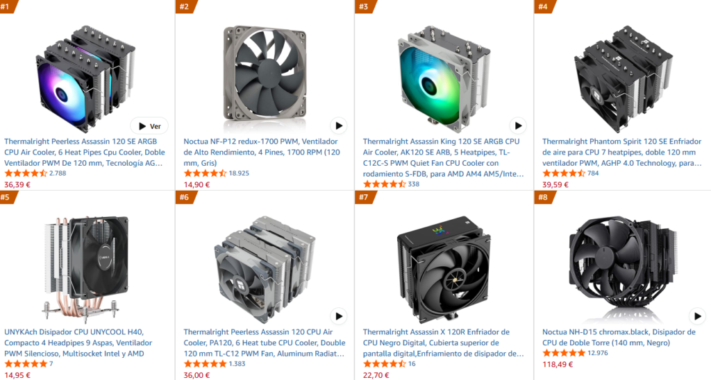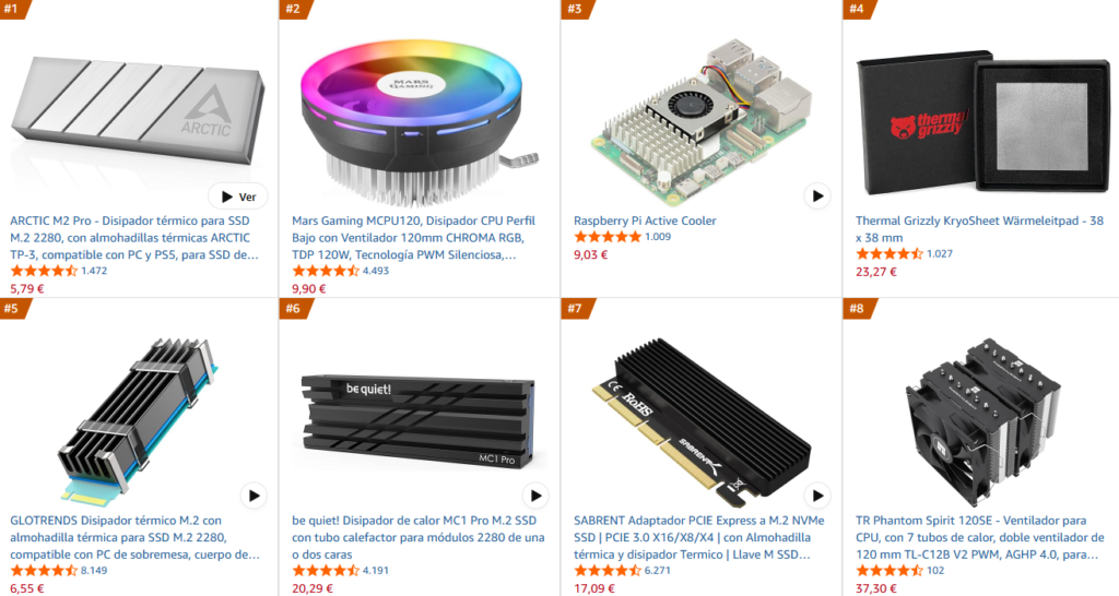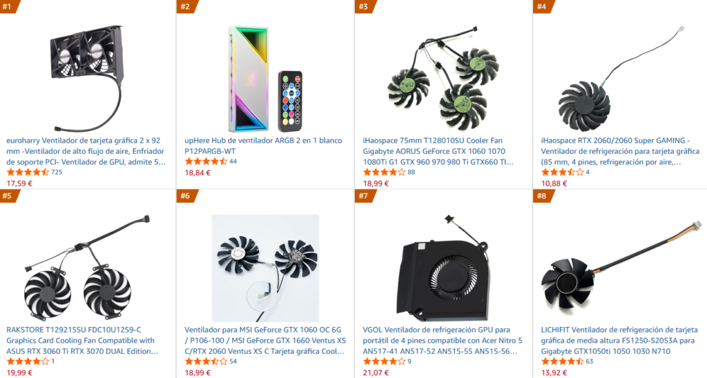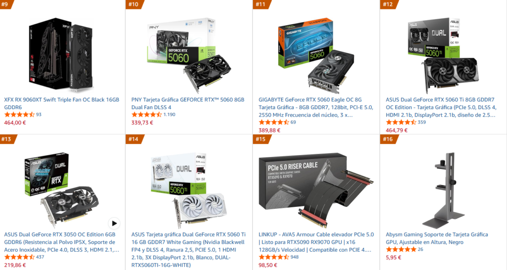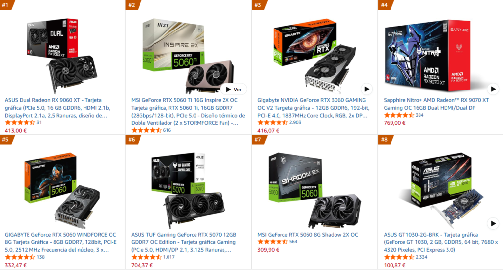 Las marcas de tarjetas gráficas más buscadas y compradas en Amazon son: ASUS, MSI, Gigabyte, Sapphire y PNY.