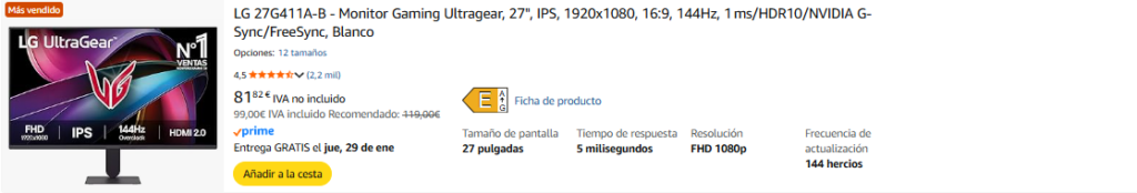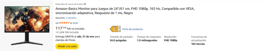 Las marcas de monitores gaming más buscadas y vendidas por Amazon son: Amazon Basics, LG, Acer, Mars Gaming, MSI, ASUS y Dell.