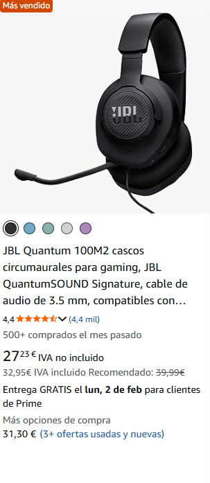 Las marcas de auriculares gaming más buscadas y compradas en Amazon son: Logitech y JBL.