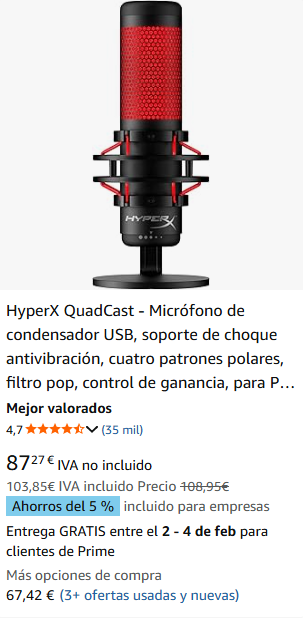 Las marcas de micrófonos gaming más buscadas y vendidas por Amazon son: RODE, Shure, HyperX, Samson y Lavali